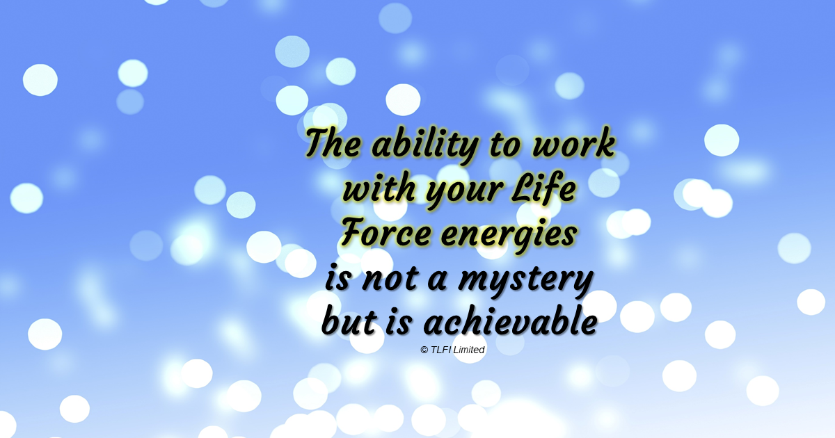 Much has been written about the power source associated with the human apparatus. The living energies which exist in all living things, manifest as your Life Force. You might identify with your Life Force energy as an inner awareness, your authentic spirit, your soul, to name but a few. Some will see this concept as mysterious, vague or intangible. The ability to work with your Life Force energies is not a mystery but is achievable via Cognition (a true calmness of mind) and Ekagrata (focused thought).